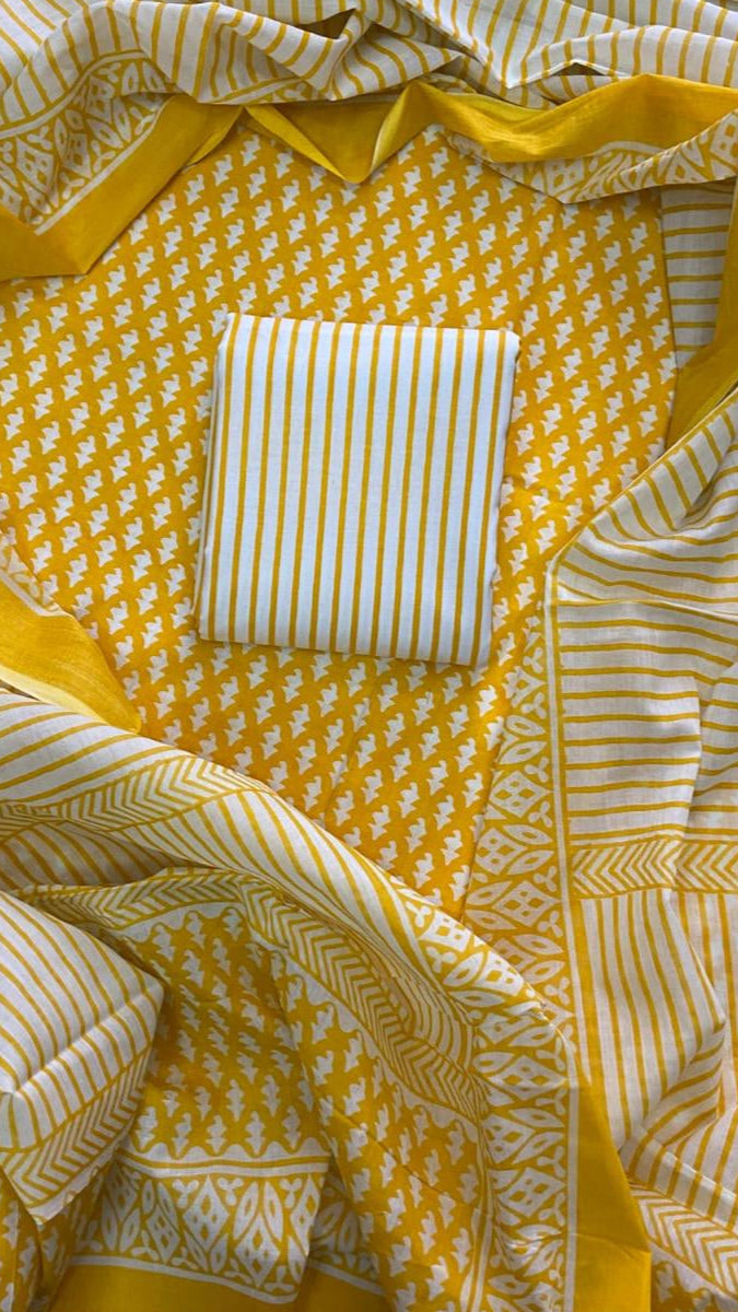Bask in the warmth of tradition with Sunheri Diva — a soft yellow cotton suit...