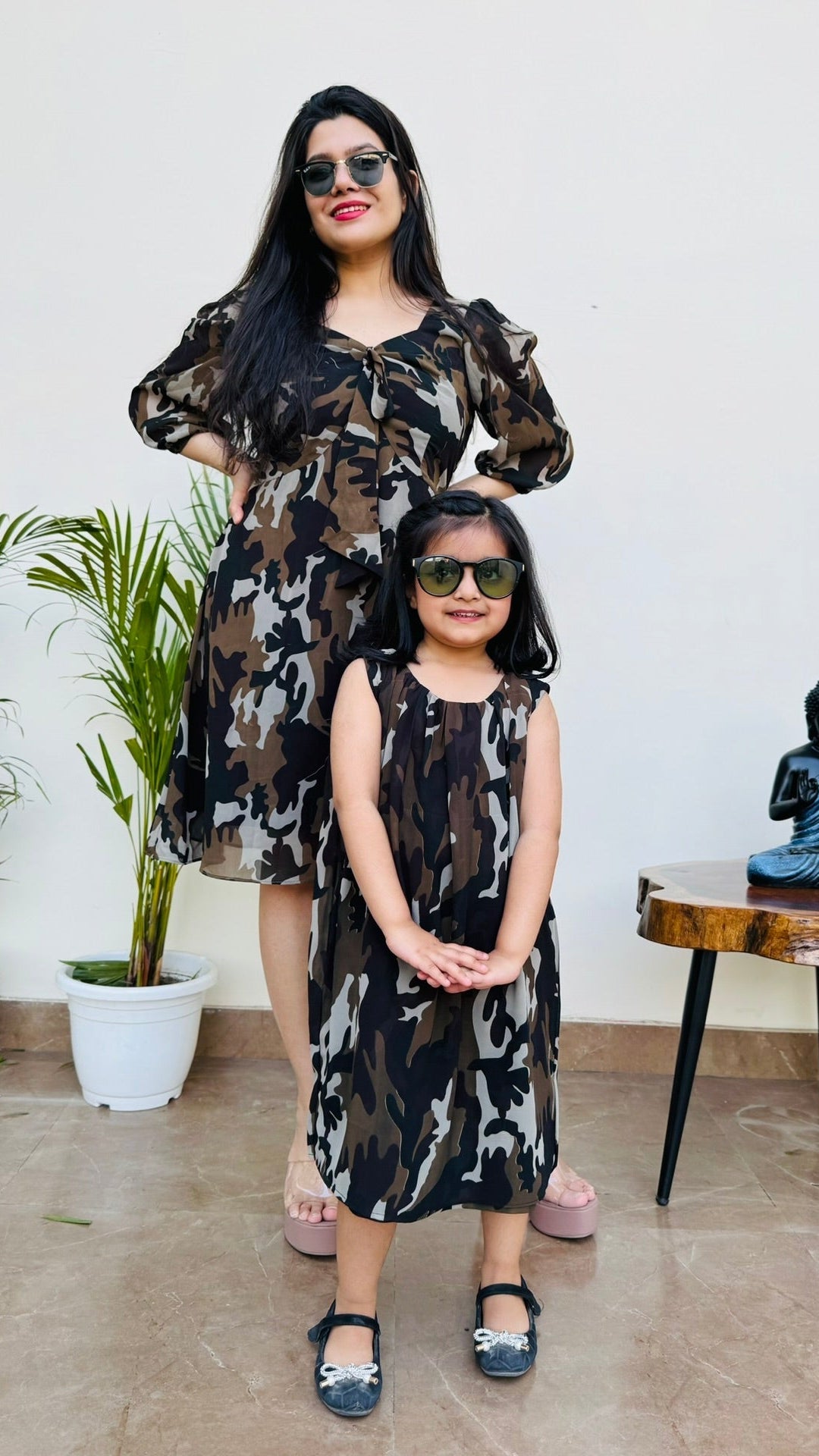 March to the beat of your own style in Twin Troopers, our twinning military-print dress...