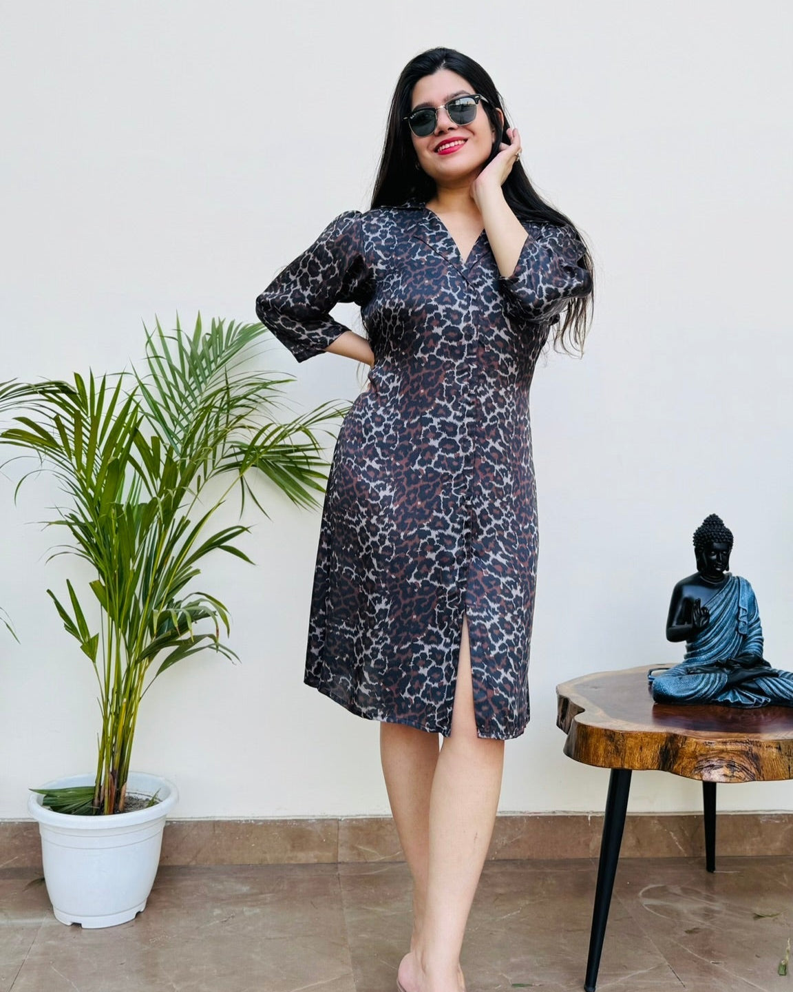 Unleash your wild side with Dusk Stalker — a fierce, statement-making dress cloaked in rich, dark cheetah prints. Designed for the woman who walks with quiet confidence and commands attention without saying a word, this dress blends power and elegance in every step.