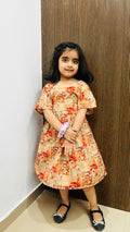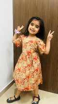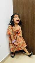 Let her twirl into sunshine with the Tangy Twirl frock — a delightful blend of soft beige and orange hues in lightweight rayon fabric. Perfect for warm days and playful adventures, this flowy dress lets her move with ease and style.