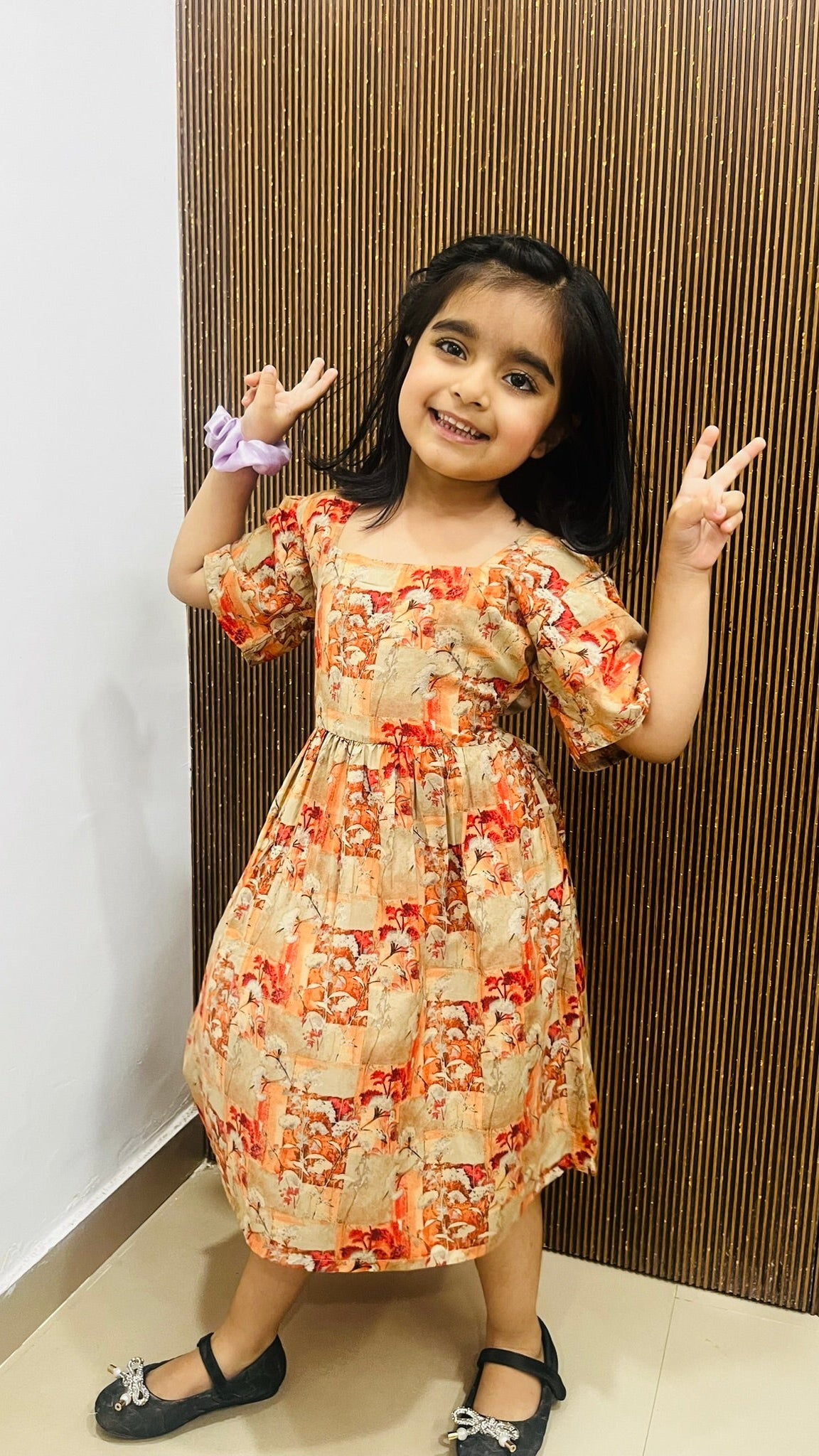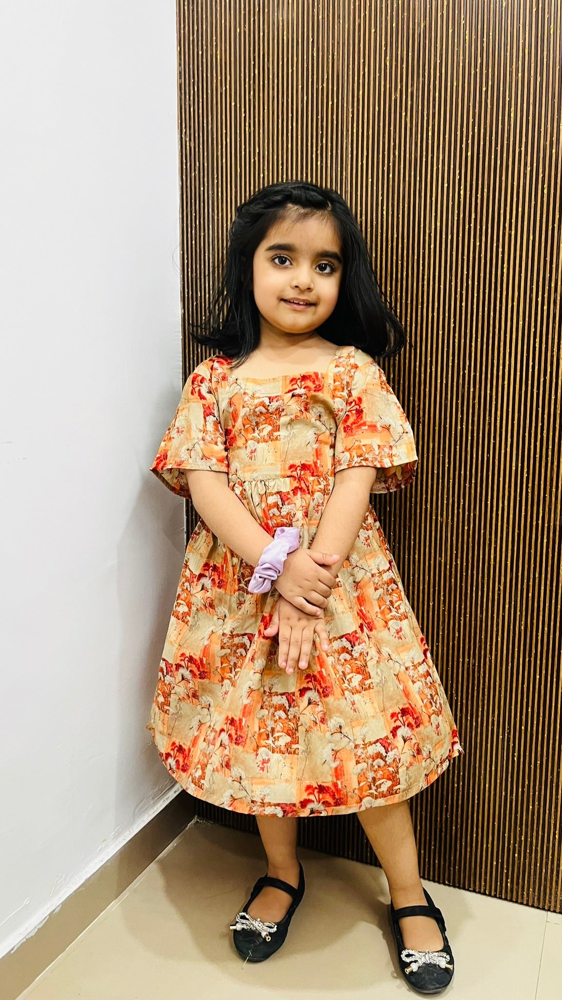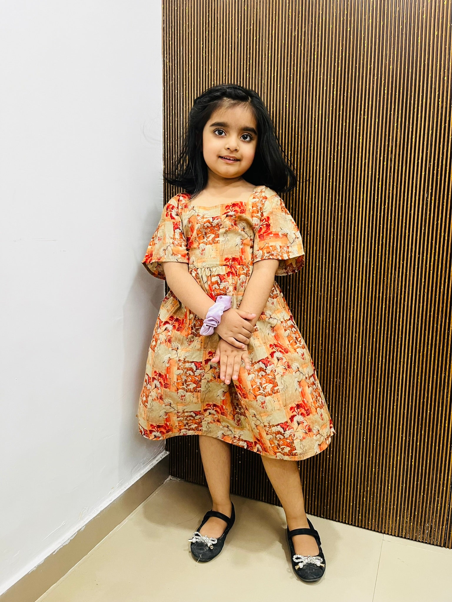 The breezy, flattering silhouette combined with the vibrant pops of orange creates a look that’s as fun as it is comfy. Whether it’s a picnic in the park or a birthday celebration, the Tangy Twirl frock adds just the right touch of brightness to her day.