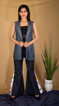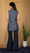 For the woman who owns every room she walks into, Power Play is your ultimate style weapon. This sleeveless blazer in a blue denim-look striped fabric is sharp, structured, and unapologetically bold — designed to reflect strength with a side of sass.