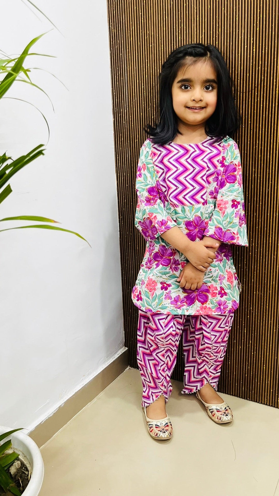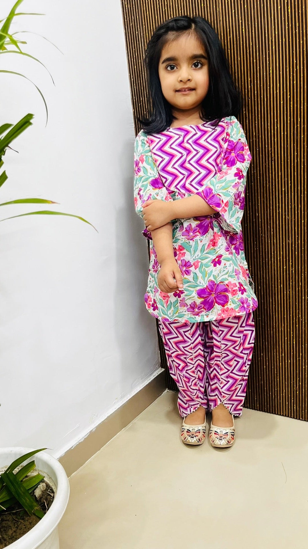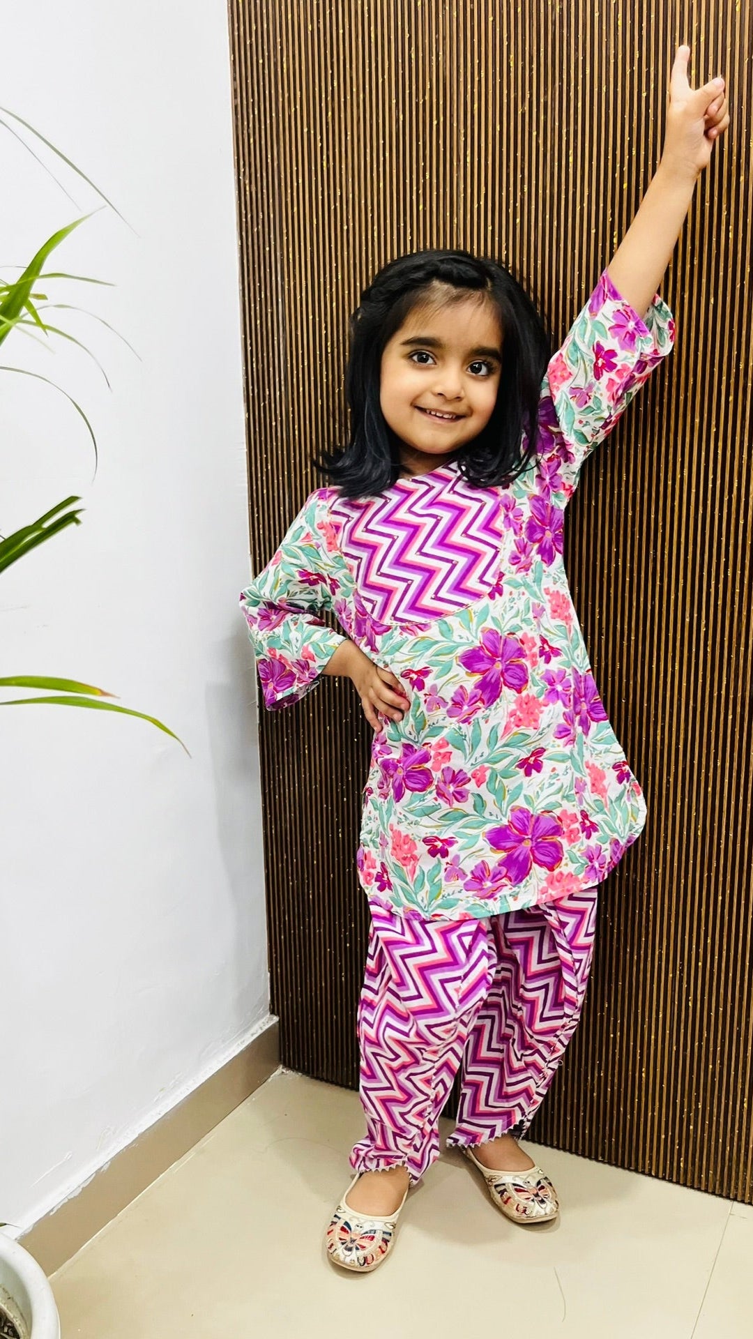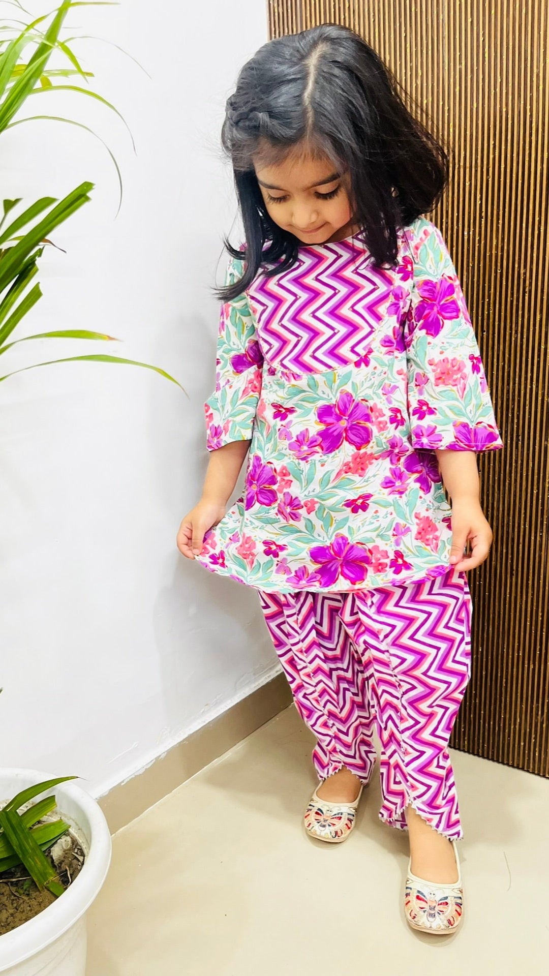 The relaxed silhouette makes room for every twirl and giggle, while the delicate design adds a touch of desi chic to her wardrobe.