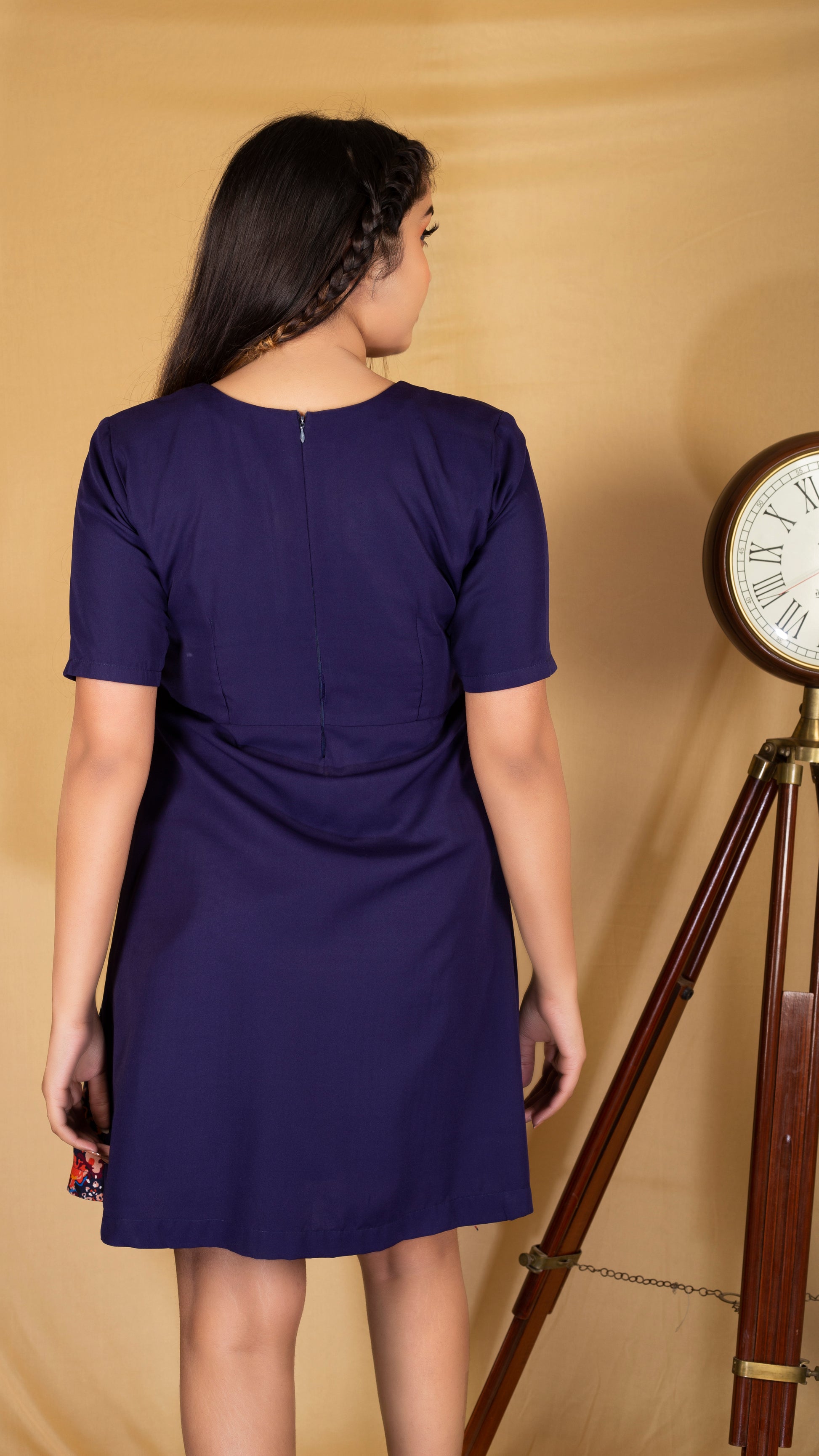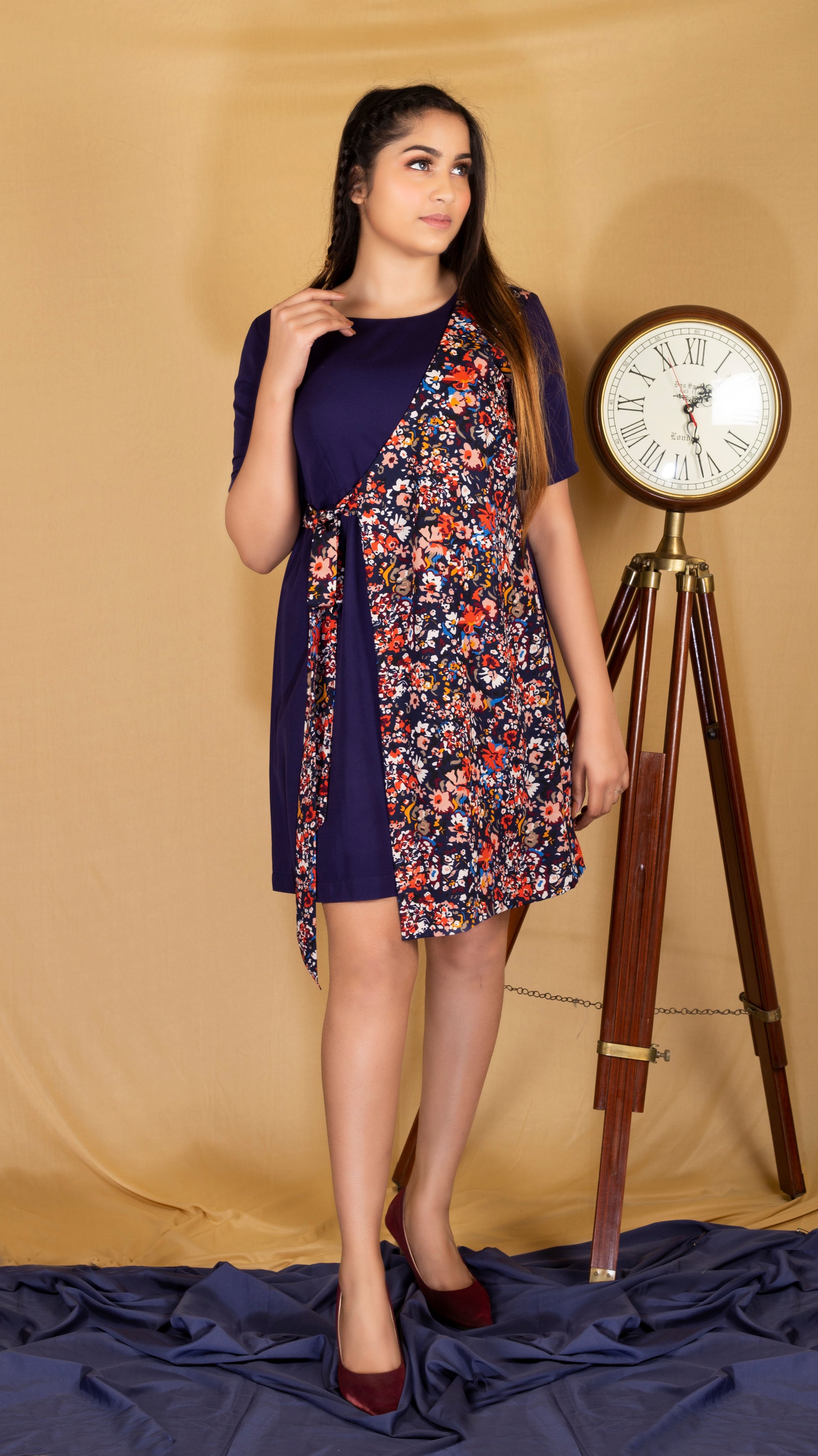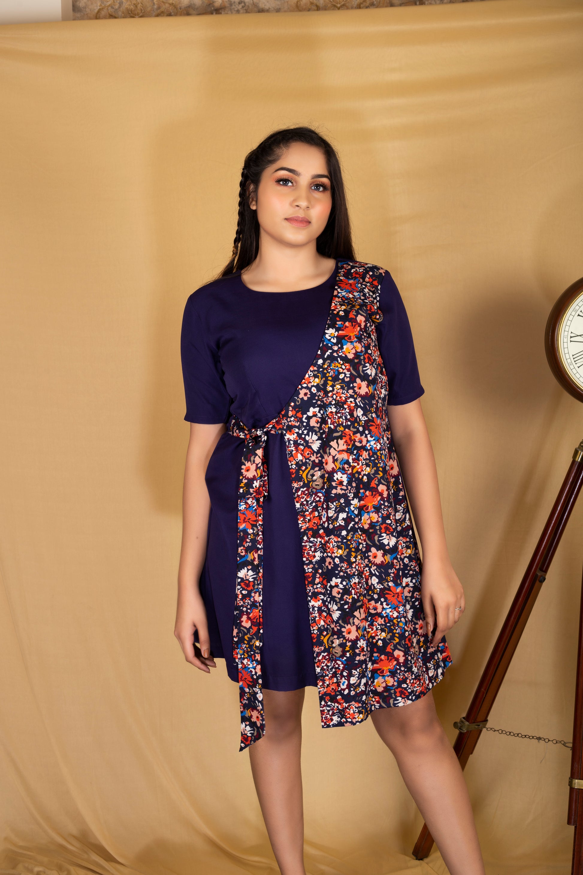 The combination of solids and prints is perfectly depicted in this dress. The wrap look of this piece is super cute and creates a look instantly.